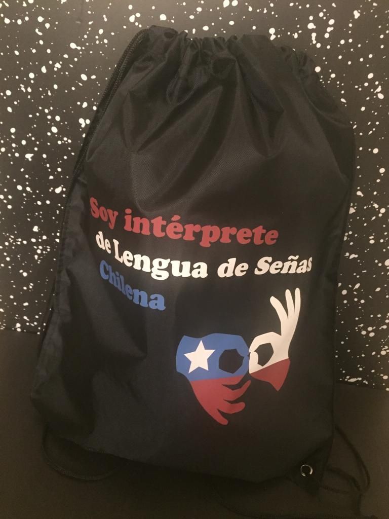Mochila tipo morral “Soy intérprete de lengua de señas chilena”